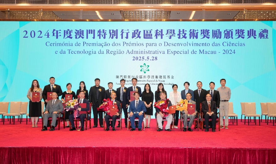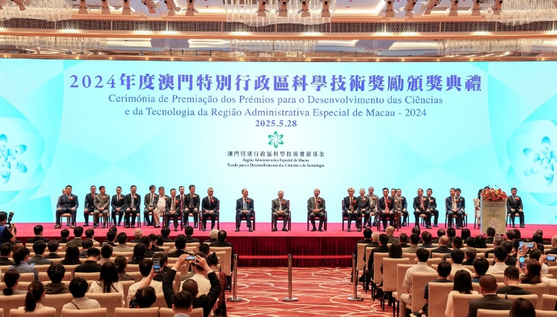「2024澳門科學技術獎勵」頒獎典禮於2025年5月28日假中國與葡語國家商貿合作服務平台綜合體會議東廳舉行。澳門特別行政區行政長官岑浩輝,中央人民政府駐澳門特別行政區聯絡辦公室主任鄭新聰,外交部駐澳門特别行政區特派員公署特派員劉顯法,經濟財政司司長戴建業,科學技術發展基金項目顧問委員會委員、廣東院士聯合會會長郭仁忠,科學技術發展基金行政委員會主席謝永強及澳門科學技術獎評委等代表出席儀式,為澳門科學技術獎勵獲獎者頒獎。
